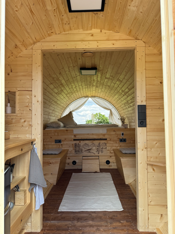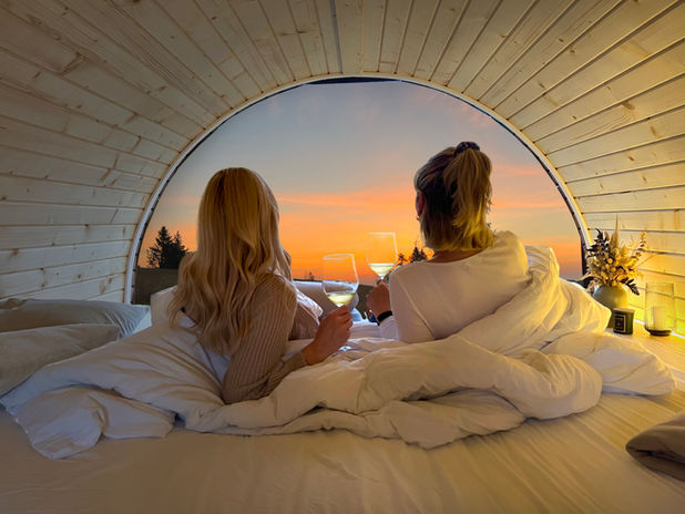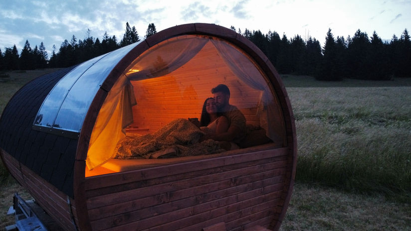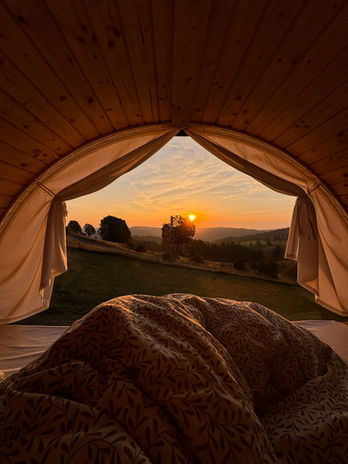 Eine Übernachtung im Fässle ist ein einzigartiges Erlebnis. Trotz hohem Komfort und allem, was man für eine gemütliche Nacht braucht, erwartet dich hier eine besondere Nähe zur Natur: eine Ruheoase mit einem großen Panoramafenster, durch das du morgens den Sonnenaufgang beobachten kannst.